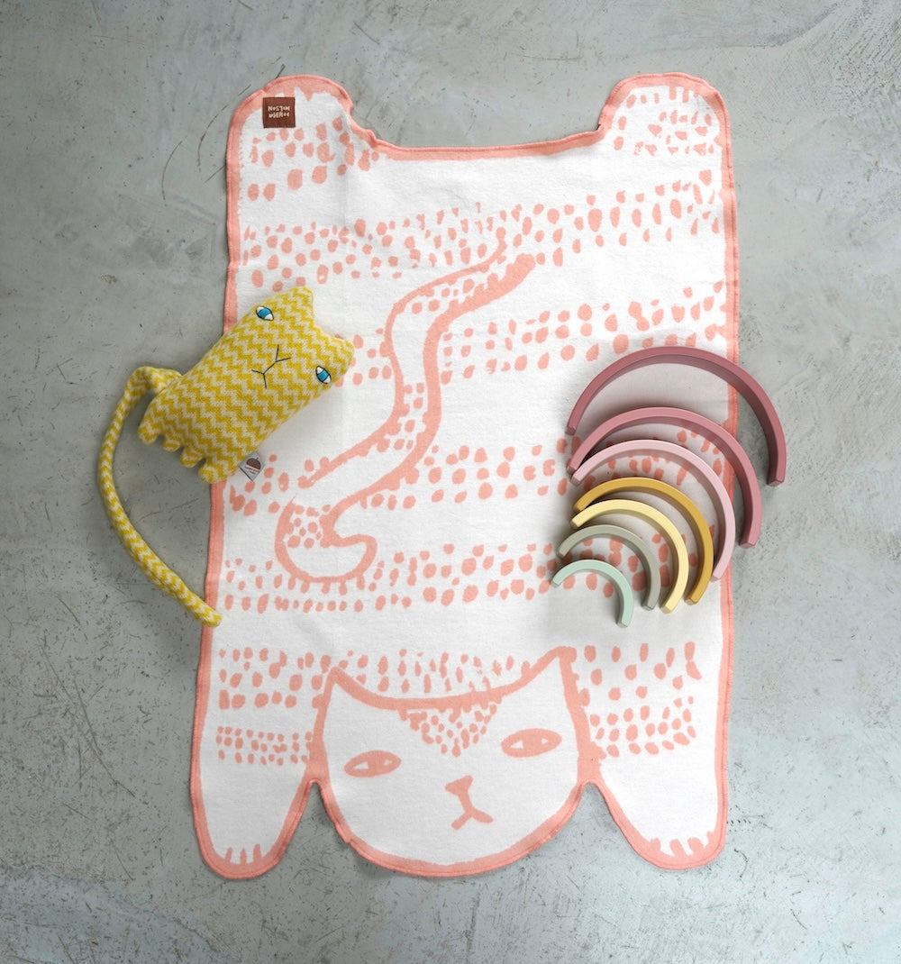 Our cosy Cat Shaped Cotton Mini Blanket is just the right size for a baby blanket or a little person. Made from soft brushed cotton, it’s machine washable so is also purr-fect for pets!